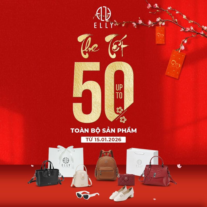 Không khí Tết thêm trọn vẹn khi phong cách được hoàn thiện bằng phụ kiện đúng gu. ELLY khuyến mãi siêu hời SALE UP TO 50% cho mùa Tết năm nay. Túi, Giày, Kính, Ví, Balo, Đồng hồ, Clutch, Dây lưng… nam/nữ – sang trọng, thanh lịch chuẩn tinh thần Paris, diện thì sang, chọn làm quà Tết càng đẳng cấp.